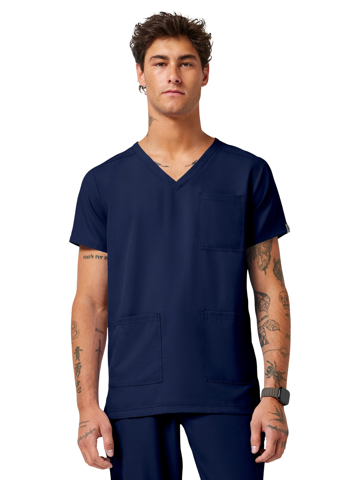 Are you looking for a scrub top with pockets? Good things come in threes. Case in point: your Insight three-pocket scrub for its great fit, features, and fabric. Single chest pocket and two single patch pockets. Center back length: 30".