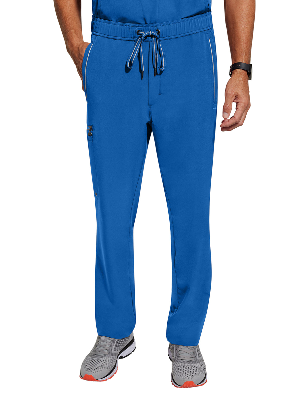 This Noah Pant offers a Modern fit with a straight leg cut and elastic drawstring waistband. This mid rise pant features back yoke detail and a zip fly front closure. There are 7 pockets for ample storage: 2 front welt pockets, 2 back welt pockets, 1 hidden mesh pocket, 1 cargo pocket with pen/instrument slot, and 1 zip cargo pocket. Leg opening: 16 1/2". Inseam: Regular: 31". Short: 29"