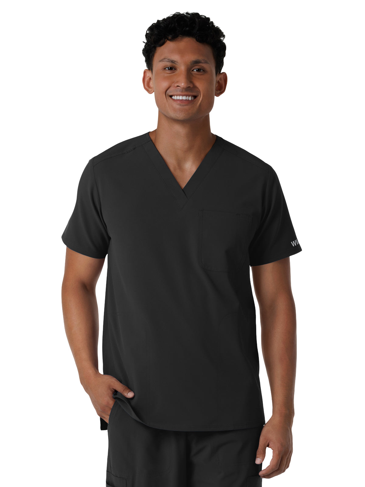 While a scrub top might seem like a basic essential, it's the thoughtful details that can truly elevate it to a favorite in your work wardrobe. This men's scrub top combines a flattering V-neck shape with a crisp, comfortable poplin fabric, creating a polished and professional appearance that's ideal for any healthcare setting. The fabric offers a structured yet breathable feel, ensuring you stay cool and comfortable throughout your busy shift. Functionality is key, and this top delivers with a range of practical features designed to make your workday easier. A conveniently placed badge loop ensures your ID is always visible and easily accessible, streamlining identification processes and enhancing workplace efficiency. Multiple pockets, strategically placed for optimal accessibility, provide ample storage for essential tools, notes, and personal items, keeping you organized and prepared. The crisp poplin fabric provides a professional look, while the thoughtful design details ensure you have everything you need within reach. With its combination of classic design and functional features, this scrub top is a reliable and versatile addition to any healthcare professional's wardrobe.