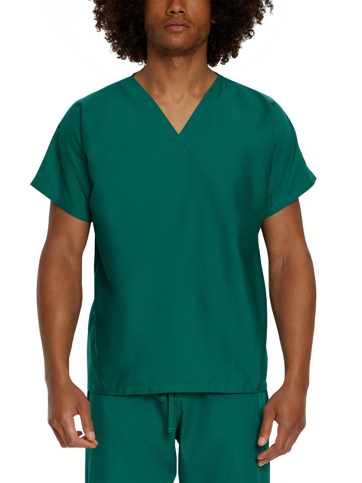 Experience timeless style and comfort with this classic fit, no-pocket scrub top. Designed for optimal comfort and ease of movement, it features a flattering crossover neck band and a woven label at the left sleeve for a professional touch. The breathable, fade-resistant fabric ensures lasting wear, while the clean front and back provide a roomier fit. This versatile scrub top is perfect for everyday use and durable enough for commercial laundry. Length: 27.5" length (size small). Please note: Women may want to order one size smaller in this unisex piece.