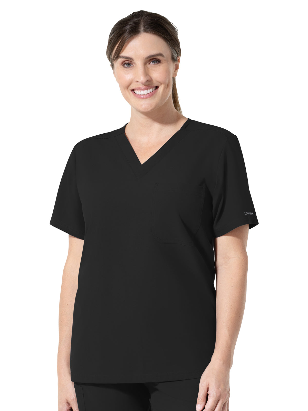 This unisex V-neck scrub top is designed to be a reliable staple through long shifts, demanding tasks, and all of the quiet moments in between. Made with your day-to-day work in mind, it provides the ultimate in comfort and durability. The soft, breathable fabric not only feels great against your skin but is also an active player in your comfort, wicking away moisture to keep you feeling cool and dry even when things get hectic. Built to last, it's also fade-resistant, helping your scrubs keep that fresh, vibrant color longer wash after wash. The modern fit is carefully tailored to skim the body, providing a silhouette that's neither too tight nor too loose. It keeps you looking professional and confident while giving you the freedom to move. Made from strong mechanical stretch fabric, this top gives you the flex you need on active days. The side hem vents add extra mobility, so you're free to bend, reach, and navigate your rounds. In addition to its comfort, stretch, and durability, this top is packed with purposeful details that help make the day a little easier. It features a single chest pocket for quick access to a pen or small tools, a convenient shoulder badge loop to securely hold your ID or other essential items, and a subtle back seam that adds to its polished looks. Part of the Nurtür collection, this piece is built with work-ready performance in mind, offering a professional look that's fully equipped to handle the complex demands of your vital work. It's designed to perform, just like you. Body Length (size M): (F) 29" (B) 29.5"