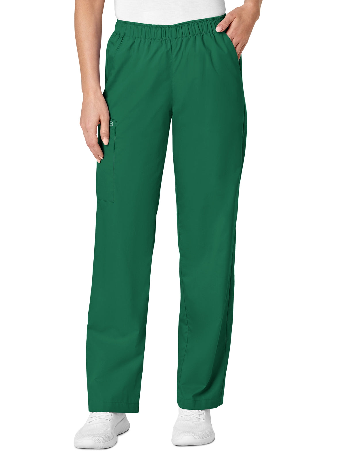 WonderWORK's Women's Pull-On Cargo Pant, featuring a full elastic waist, front rise slits just below the natural waist, with a higher back rise for added coverage. This straight leg pant includes two front slash pockets, one cargo pocket with a utility loop, one pen slot and one cell phone pocket. Inseam Length: Regular: 31", Petite: 28 1/2", Tall: 33