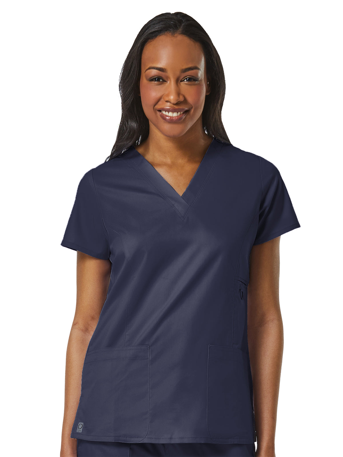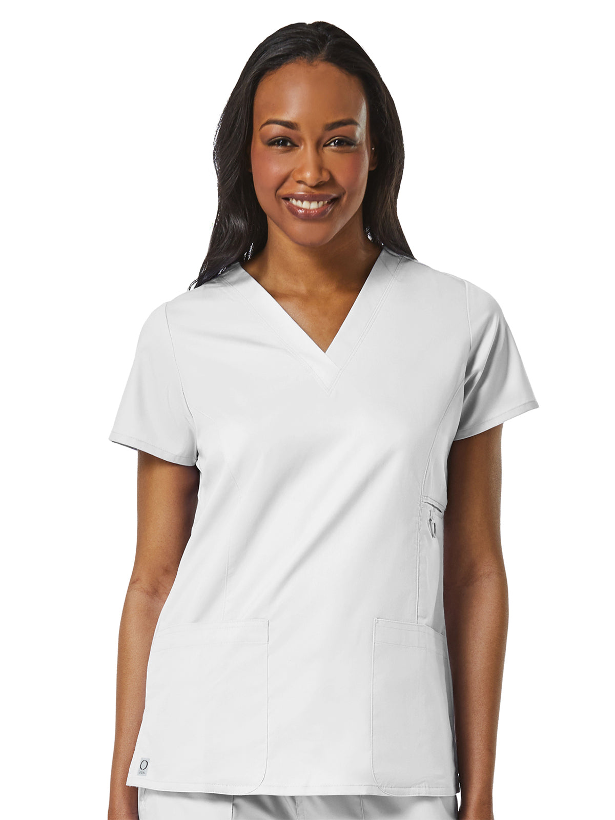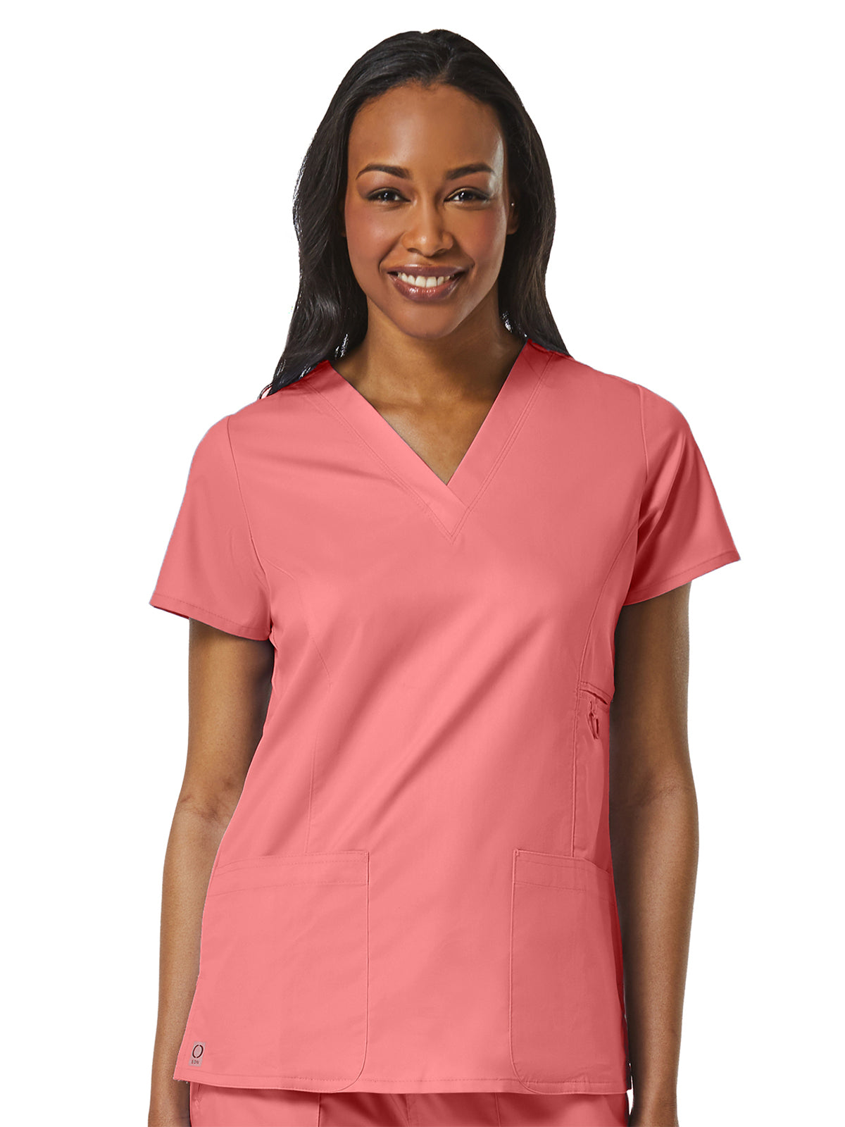 Maevn's Eon Brand introduces COOLMAX fabric technology by Invista. This technology employs specially engineered fibers designed to draw moisture away from the skin, keeping the wearer cool and dry. This wash and wear material is wrinkle-resistant with minimal shrinkage. The lightweight, soft and breathable mesh material combined with our styling gives you a touch of performance while maintaining a professional look. The V-Neck Pocket Top features front princess seams and back darts for added style and shape, a small welt pocket at the waist with a triangle ring, two lower patch pockets, a small hidden patch pocket, an Inner utility loop at the pocket, and side vents.
