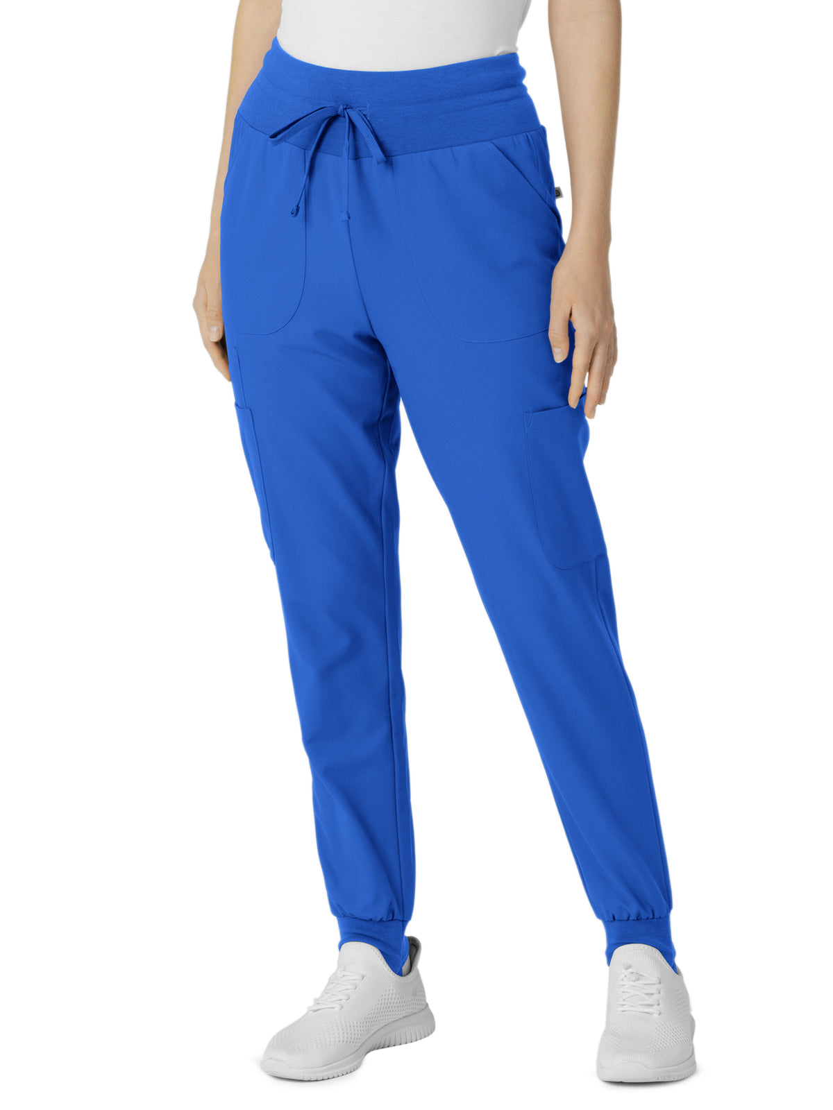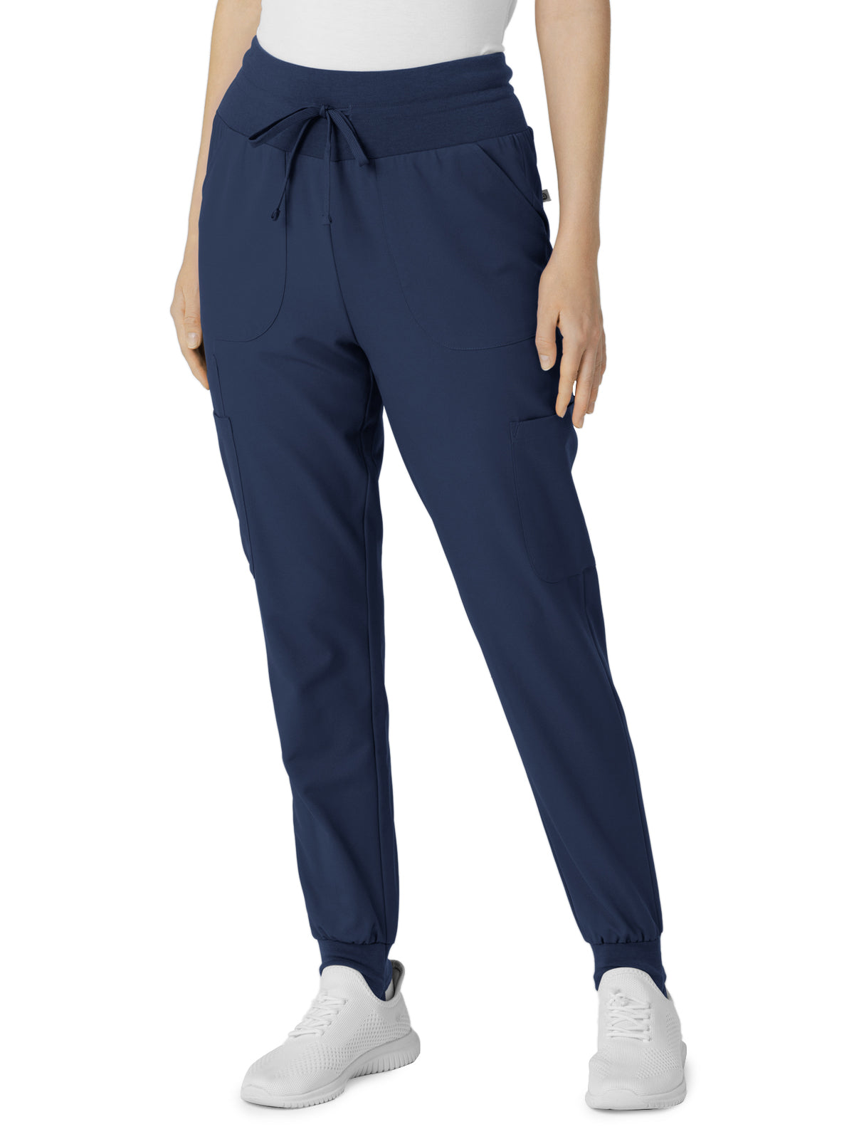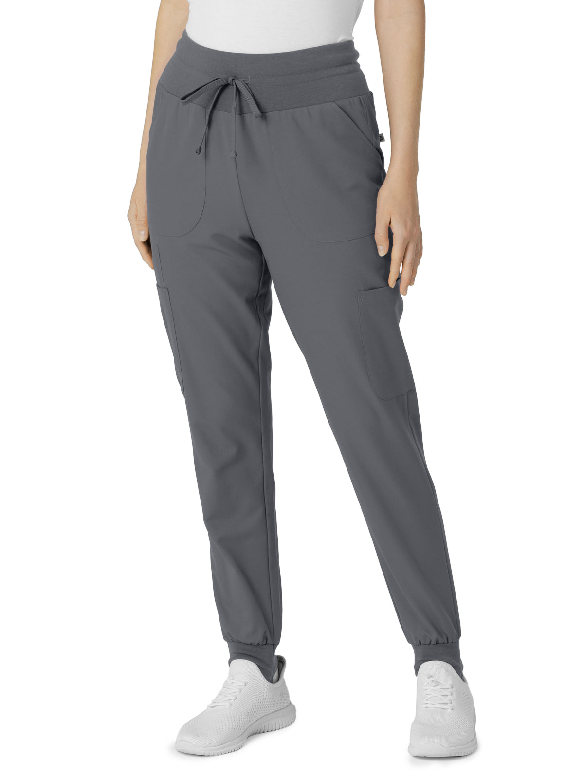 You're an expert at moving from one thing to the next — and these women's jogger scrub pants have it down, too. Designed with a convertible stirrup cuff, they give you two ways to wear them for extra versatility. Use the stirrups anytime you want to keep the drape securely in place, then remove them when you prefer a more relaxed look. The high-waist build delivers coverage to keep you feeling confident, and the knit waistband is finished with a drawstring to adjust the fit for customized comfort every time. You'll love the modern fit that skims your body without constricting movement or feeling too loose. Made with a soft material, these scrub pants stay breathable through it all, from prepping your nurse's station to completing the last patient rounds. Prioritize organization with two front pockets, two cargo pockets, one scissor pocket, and one phone pocket that keeps essentials by your side yet neatly tucked away. Inseams: Regular: 29.5"; Petite: 27.5"