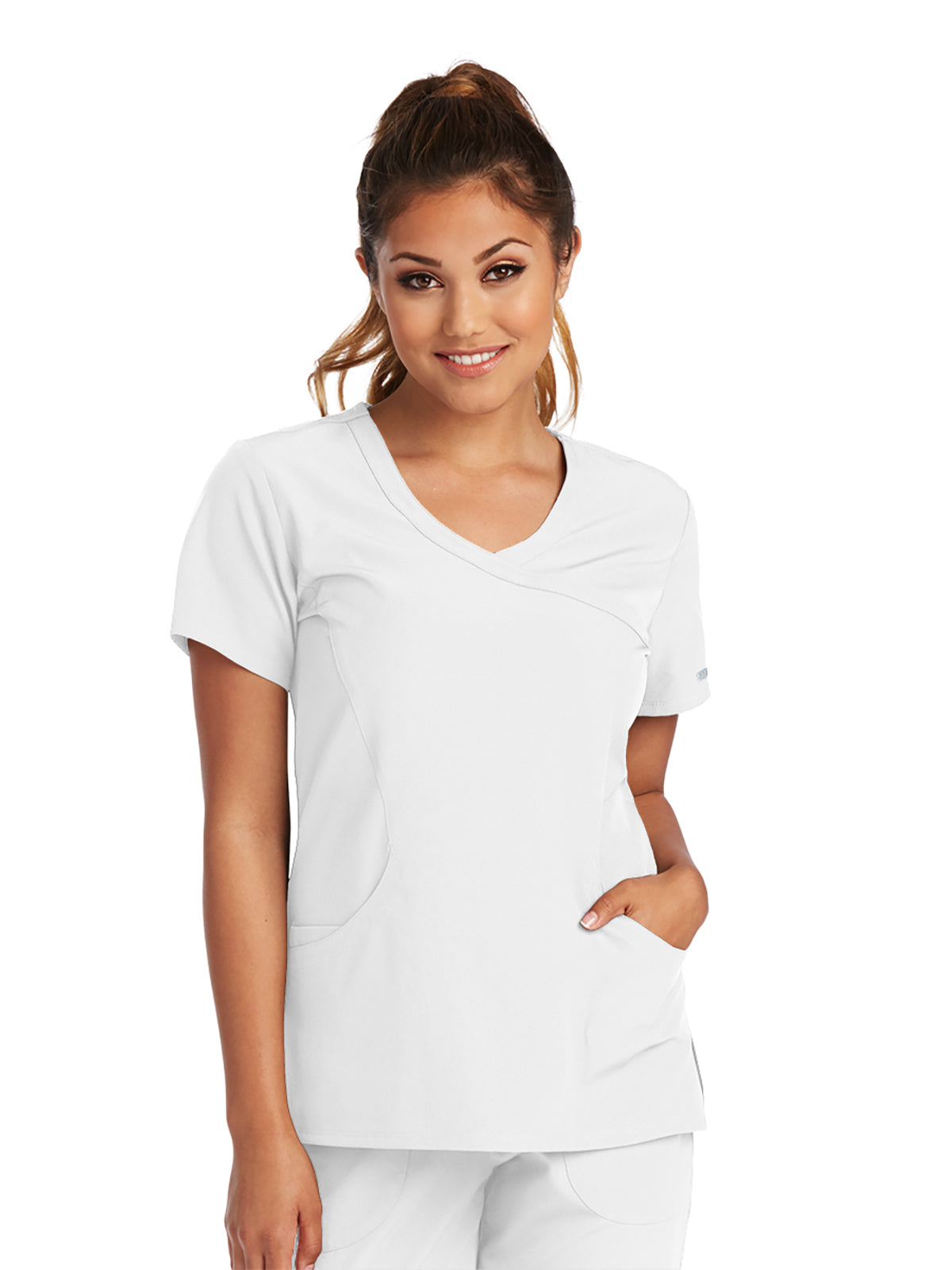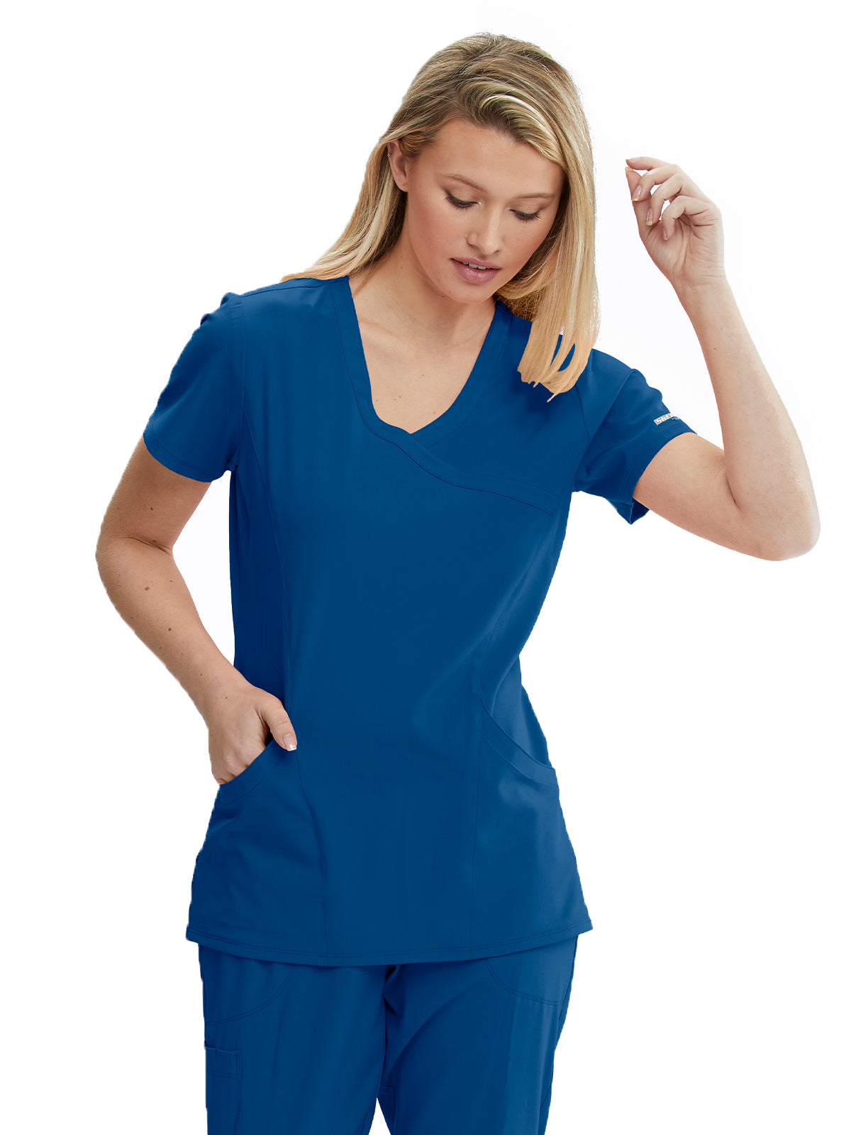 Everyone needs that go-to scrub top: one that fits like a glove, keeps you from getting sweaty, and comes in tons of colors. This is the one! Made with Skechers eco-friendly, moisture-wicking fabric, Reliance has a chic mock wrap style and anti-wrinkle technology that keeps you looking fresh as a daisy. LENGTH (Center Back) | 25.5"