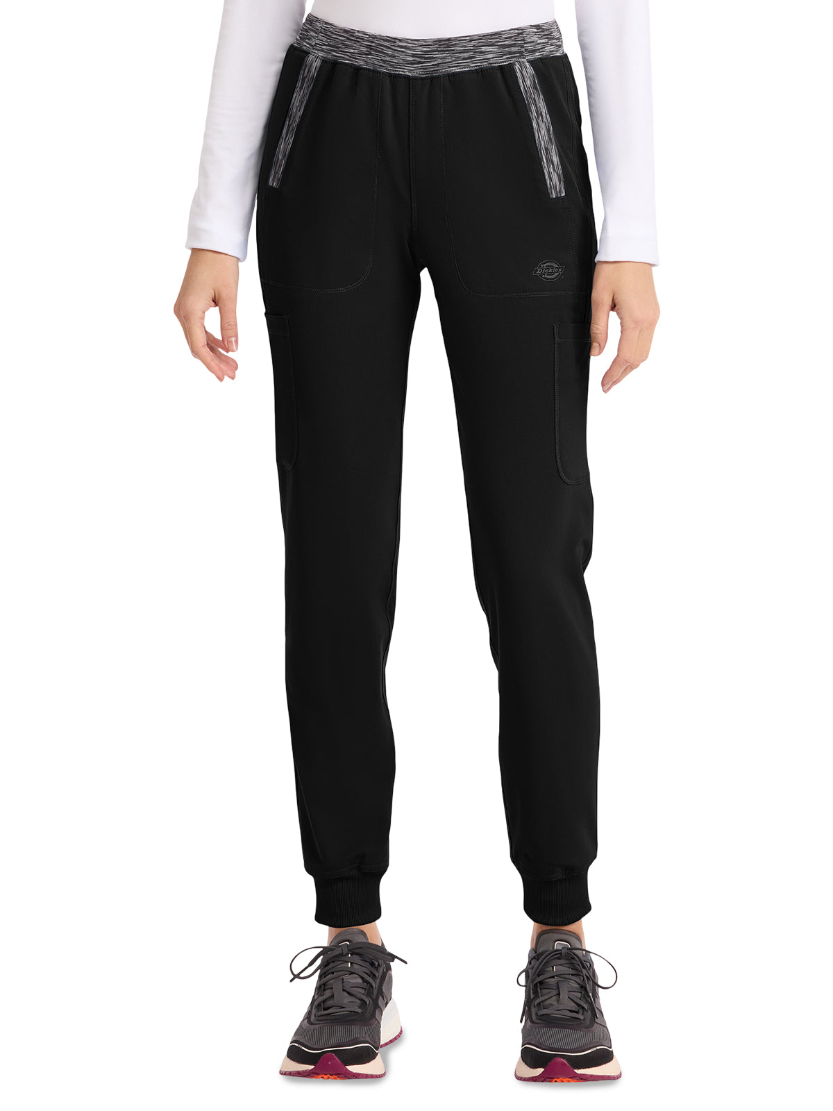 - Space-dyed trim at waist and pockets; Rib-knit cuffs