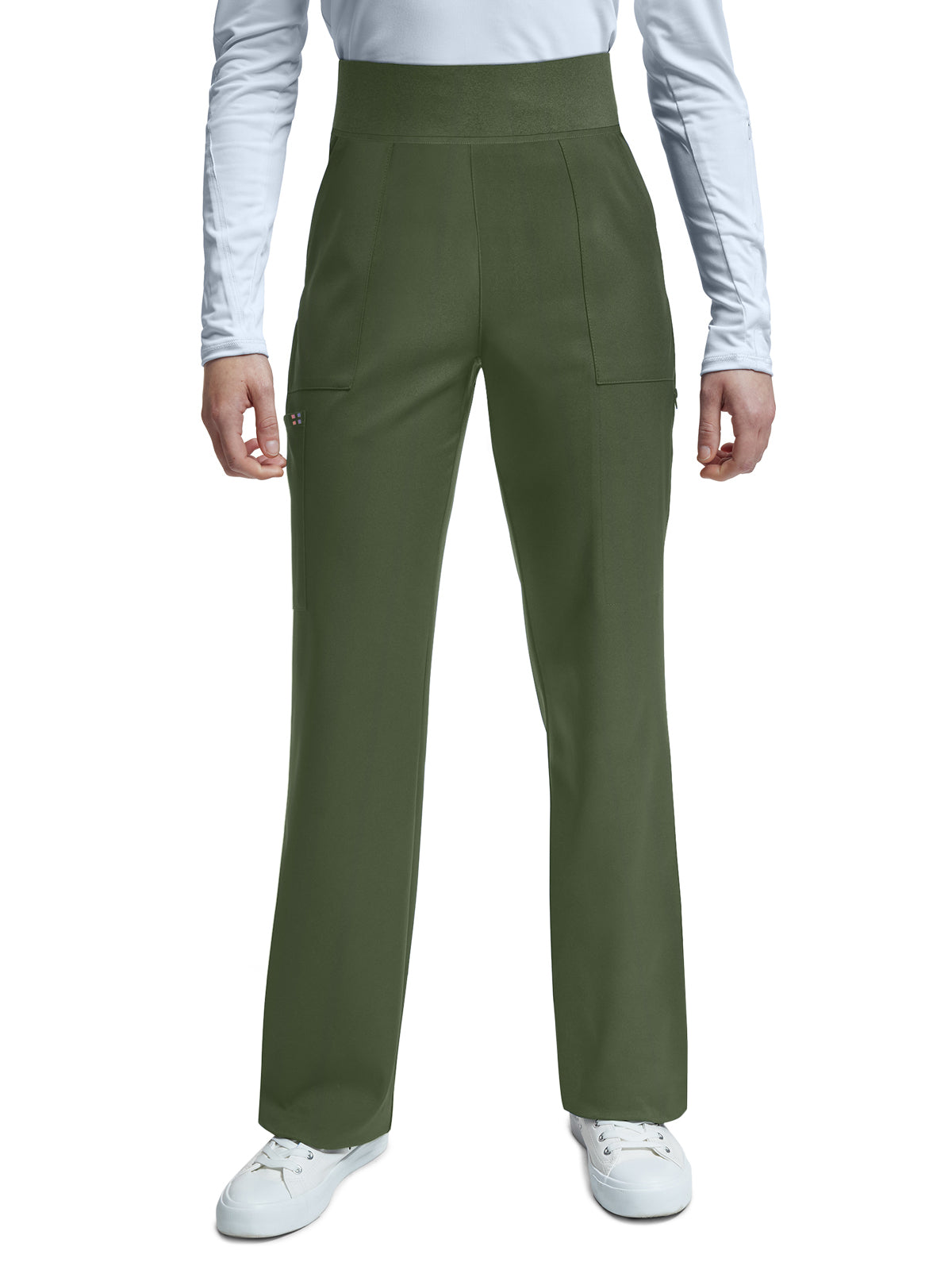 Designed for active professionals, these women's pants showcase a wide-leg silhouette that seamlessly blends style with functionality. The sporty design incorporates six pockets, including a convenient zipper cargo pocket. The waistband is thoughtfully crafted with a comfortable knit and an internal drawcord, ensuring both ease and functionality. Inseam: 31"